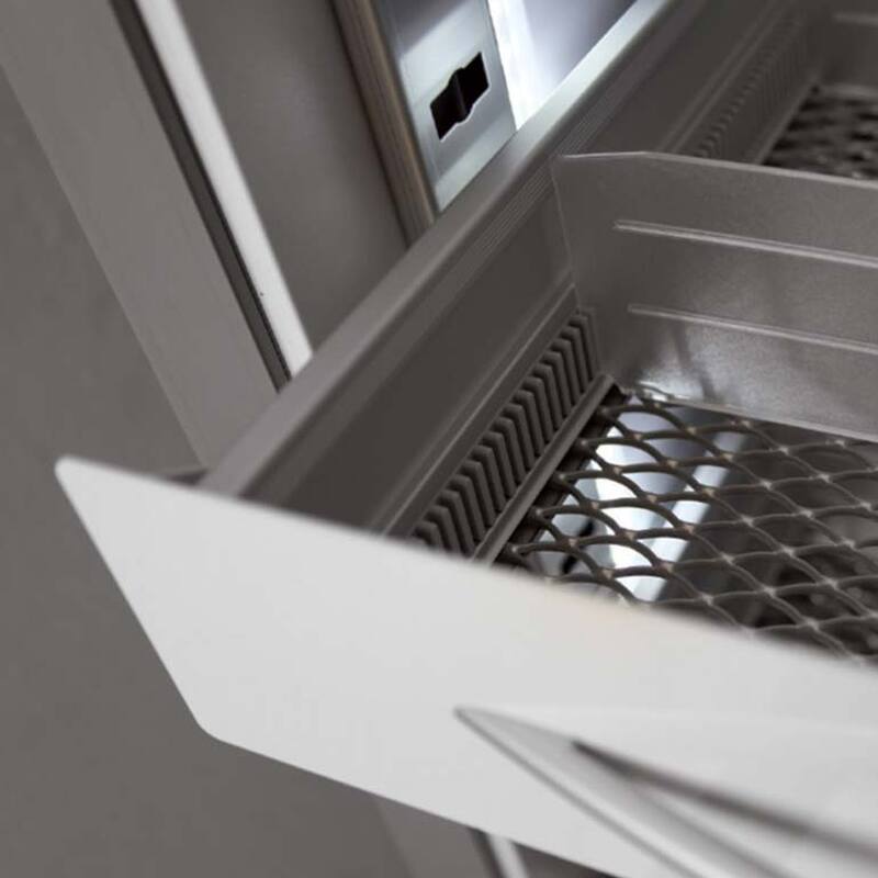 Équipée d'une unité de contrôle électronique à écran tactile, cette armoire enregistre et maintient la température désirée avec précision. Ses multiples alarmes sonores et visuelles, associées à une serrure électronique de contrôle multi-accès, garantissent la sécurité des médicaments stockés. Son seuil sonore de 45 dB la rend compatible avec les étagères filaires, les tiroirs en aluminium et les paniers en acier pour une organisation optimale du stockage.