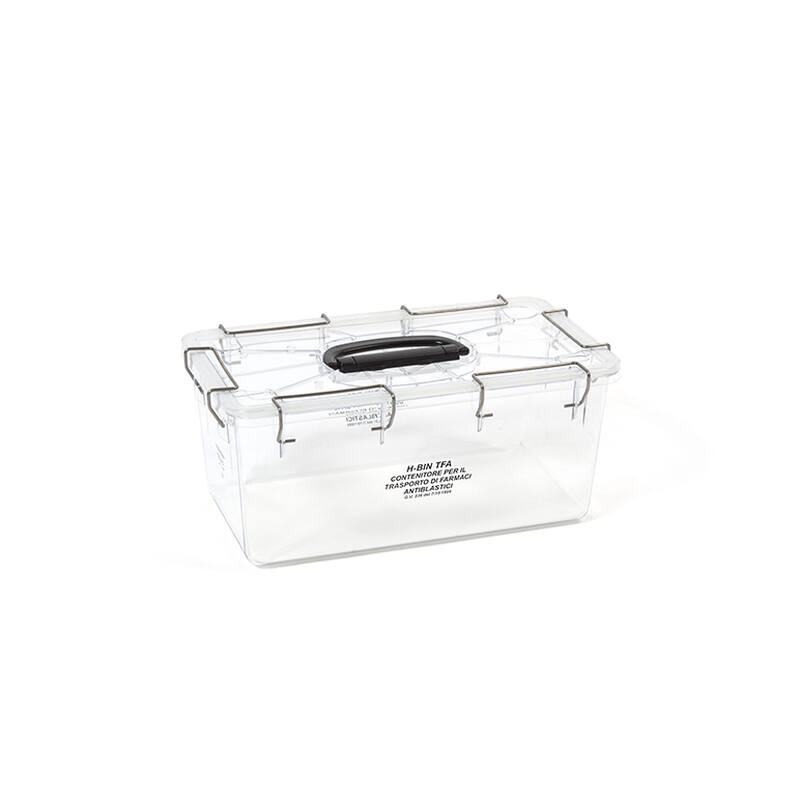 Les conteneurs secondaires en polycarbonate sont conçus pour garantir un transport sécurisé, hermétique et conforme aux réglementations des médicaments cytotoxiques utilisés en chimiothérapie.